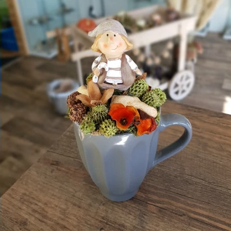 Egyedi őszi dekorációs termék bögrében.