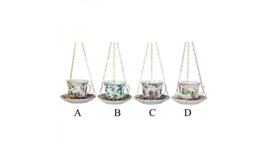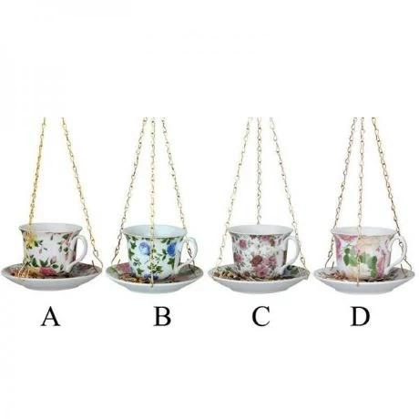 Kerámia, teáscsésze alakú madáretető különböző színekben.