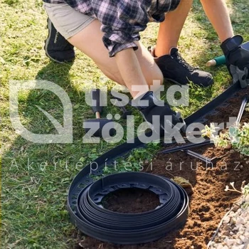 Rugalmas, műanyag gyepszegély szett, leszúró tüskével, 4 cm x 10 m, fekete