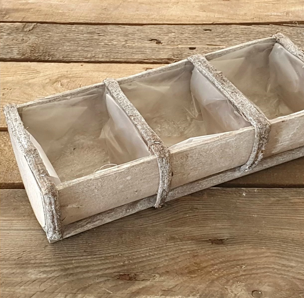 Természetes fa kaspó,bélelve. Három részes.