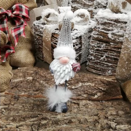 Manó csillaggal,fenyővel alló 5*3,5*15,5 cm fehé, arany
